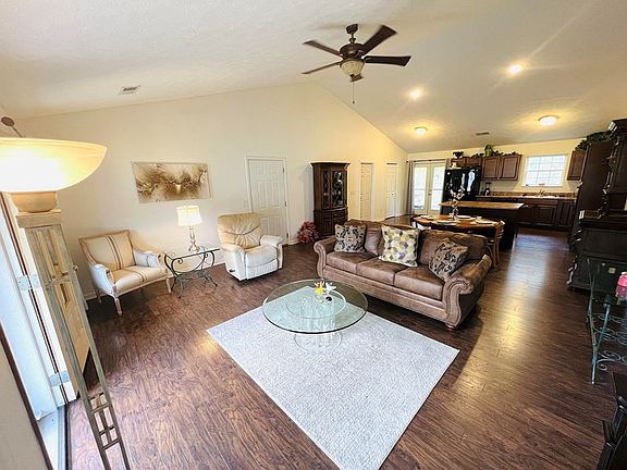 Owner is agent Newer community Single story open floor plan with split bedrooms & screened in porch, backs to woods. On culdesac street with fully fenced large back yard in prestigious Ridgewood Estates conveniently located minutes from neighborhood Walmart, Food City, restaurants & more. Wooden floors in 3 bedrooms and laminate wood flooring in living dining and kitchen. Tile baths. Master bath boasts luxurious $14000.00 walk in jetted spa tub with shower wand and heated seat. Heated toilet seat in master bath. Beautiful custom landscaping Enjoy screened in porch Fenced in yard. New dishwasher, New neutral paint in living room, kitchen and dining. Washer and Dryer included Electric fireplace tv stand included Does not include patio swing or hot tub that is disconnected