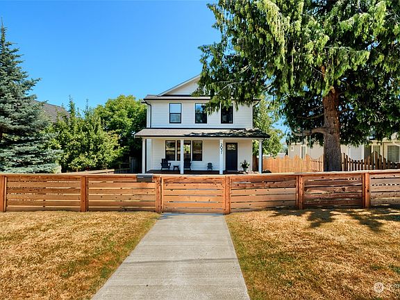 Enjoy classic charm in this better than new 2 story built in 2022. This enchanting home welcomes you inside w/an inviting warmth, Easterly water views & bold views of Mt Baker. Open concept packed full of amenities such as quartz thru out kitchen & bathrooms, hardwood thru out main level & upstairs primary bdrm. Tile floors in bathrooms & neutral carpet in two bdms. Spacious kitchen w/ large island, deck off dining rm, upstairs primary bdrm w/bath, large walk-in closet & deck for enjoying the mesmerizing water & mt views. 2 addtl bedrooms upstairs share a Jack n Jill bath. Centrally located in town, nestled in a calm, serene setting featuring a low maintenance fully fenced yard, detached garage w/alley access & addtl RV/boat parking.