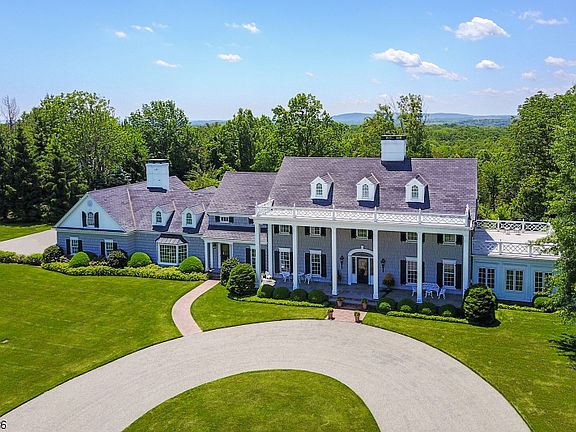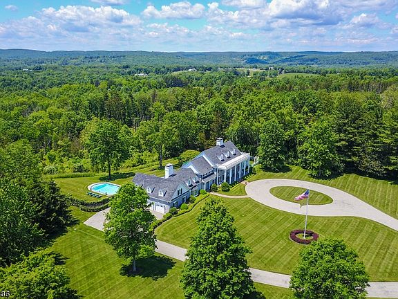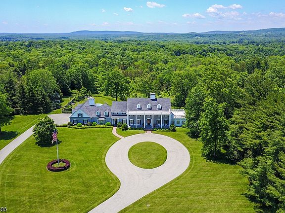 Approached by a long winding drive, this custom Colonial stands gracefully on over ten prime acres of open fields and mature woodlands. The imaginatively crafted exterior is appointed with a traditional slate roof and elaborate decorative trim above cedar shake siding. Captivating views highlight nearly every room - overlooking grounds with flowering perennial gardens, brick walls, stone patios and pathways, and heated pool and spa. Exterior lighting adds a magical touch to the ambience of this distinctive property. Above all, this offering is highlighted by a rarely found, yet greatly coveted, magnificent vista of the surrounding countryside. Entered through an impressive foyer, the first level includes formal living and dining rooms, sunny garden room with a handcrafted lattice ceiling, gourmet kitchen with center work island and state of the art appliances, paneled library with wet bar, family room with coffered ceiling, French doors leading to a covered side porch and a winding staircase to a spacious office above. Included in the residence's thirteen rooms are four bedrooms, three full baths, two half baths, finished basement with rec room and wine cellar, plus a three car garage with stairs leading to a future expansion area. The master bedroom adjoins a balcony overlooking the beautiful rolling hills. Two additional bedrooms plus den and office complete the second level. The third level provides an additional bedroom suite. There is a total of five fireplaces and throughout the house is a sophisticated sound system. Classical design, fine craftsmanship and attention to detail are very evident throughout this residence and amongst its impressive grounds. Sophistication and elegance combine effortlessly with time-honored architectural traditions to create a home suited for the lifestyles of today, yet maintaining and reflecting old world charm. Located in desirable Somerset County, the surrounding area offers fine dining, shopping, recreational activities and cultural events. This home's peaceful setting is minutes from a network of major highways, including I-287 and I-78. Nearby is direct train service to Manhattan and Newark Liberty International Airport is less than an hour away