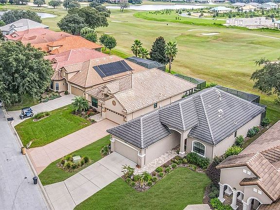 This beautiful south-eastern facing St. James care-free home at 109 ft above Sea Level is in amenity rich Terra Vista. It has everything and more you would want at a lower price than new construction. Located on the second green of Skyview Golf and Country Club Golf Course, there is a large Lanai and screened patio with a pool/spa for lounging in both the summer and winter months. As you enter this home you will see the custom beveled cut glass door that leads to this bright home. Solar tubes have been added throughout the house to allow additional sunlight. Recessed lights also have been added for additional lighting. In the kitchen you will see upgraded Cambria counters, under counter lighting and beautiful white cabinets. Enjoy the large dining area and the Hunter Douglas plantation shutters in all windows. The large master suite has TWO large walk-in closets, large shower with fused glass, a beveled Cambria countertop and double vanities. Large laundry room with plenty of counter space, cabinets, and a deep Corian sink. The garage has been enlarged to 29 ft long to accommodate a golf cart and two vehicles. The home was upgraded with a radiant roof barrier and foam in all blocks for extra insulation. Interior of the home was freshly painted in 2022. It is a short walk to Bella Vita Fitness Center and Spa. Enjoy yourself as you make friends dancing at the Tiki Bar, dining 3 restaurants, Biking, Walking, playing pickleball, tennis, Bocce and let's not forget Golf. Enjoy the Spa, Fitness Center, 2 swimming pools, taking Fido to the dog park, & the many clubs in Citrus Hills! Seller has purchased another home and motivated to sell.