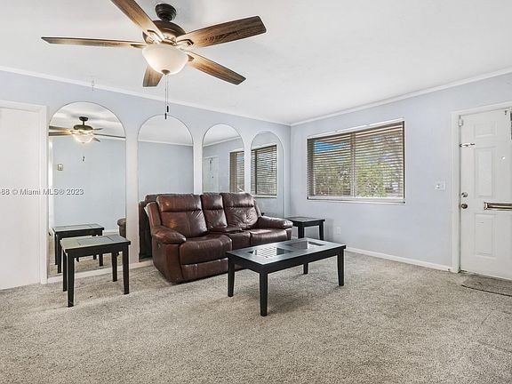 A wonderful Single Family home with 3 bedrooms, 2 baths, plus large bonus room that can be used as a 4th bedroom and a Spacious 2-car garage with circular driveway. This 7,626 sq. ft lot home, features impact windows, terrazzo floors underneath newer carpeting, and a backyard with pool perfect for outdoor entertaining. Other features are kitchen with new stainless steel appliances, lots of storage, generator hook-up and large backyard with shed. Flood Zone X. Move-in condition with endless opportunities to transform into your dream home. No HOA!