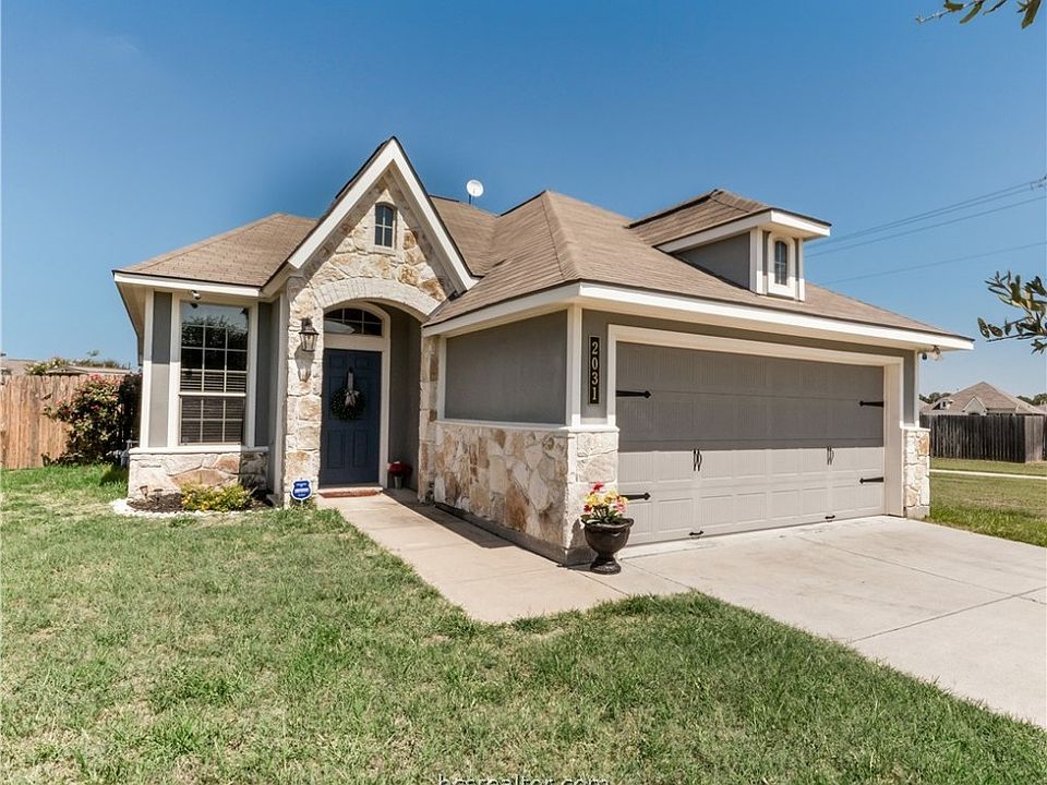 Charming and cozy come this wonderful home! The kitchen features granite counter tops, roomy pantry, refrigerator and microwave, Spacious living room with warm floors, newer paint and tons of natural light! Large master with a good size closet and attached television. Come sit on your patio looking out to your oversize backyard! Close to the community pool and the front overlooking a beautiful pond. Very close to highway 6, so close to everything! Come see this beautiful home!