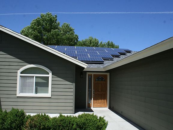 This extremely well cared for Meadowcreek home has great bonus features like photo-voltaic solar, in-floor radiant heat, on-demand hot water, fully finished oversized garage with storage, and a flowing stream! This is a turn-key home offering 3 bedrooms and 2 full baths. Open floor plan with high ceilings is great for entertaining and flows right out onto the shaded patio. The kitchen has been recently updated with quartz counter tops, garden window, custom back splash, and large stainless sink. Large laundry room off kitchen leads to the spacious garage. Large master bedroom including four piece master bath with Jacuzzi tub!