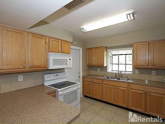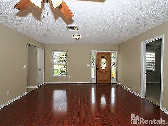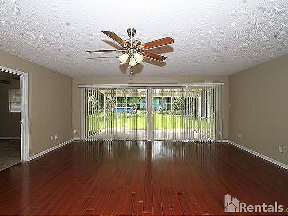 This lovely home with wooden floors and a covered patio offers a cool luxury for the Floridian weather. Enjoy ceiling fans and custom fitted blinds to regulate the sunlight. Renovated bathrooms and a remodeled kitchen with white appliances adds a sense of modernity to the home. Carpeted bedrooms are cozy. But bring your washer and dryer for even more added convenience. The yard in back is fenced and welcoming of pets of all kinds. - Garage - Wooden floors - Ceiling fans - Custom fitted blinds - Carpet - Fridge - Stove - Microwave - Upgraded bathrooms - W/D Hookups - Enclosed patio - Fenced yard - Pets welcome