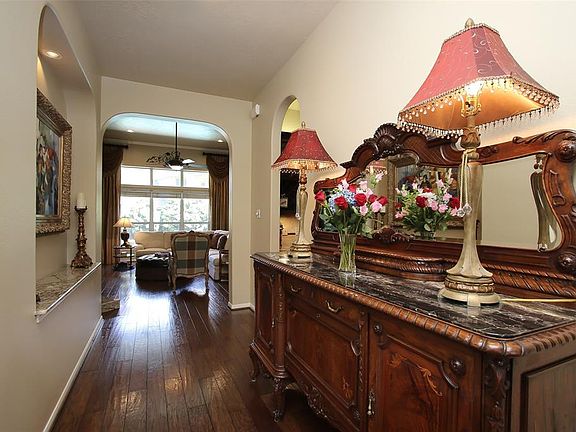 This totally remodeled one story is a SHOW STOPPER. It just may be the best looking house in WindRose. It has the best of everything: hand-scraped wide planked floors in living areas, new kitchen Kent Moore Alderwood inked cabinets, recent 20" tile in wet areas, exotic granite on counter tops and raised hearth, Bosch dishwasher, 5 burner Thermador cook-top, GE Oven and Microwave, custom hood vent, alarm, rubbed bronze hardware, designer neutral drapes, chandeliers in dining and master bath, and surround sound. The spa like master bath has been totally redone with expanded tiled shower with bench, frame-less glass, garden tub was wrapped with tile, marble counters, bronze fixtures and more. Best of all there is a heated POOL, landscaped for privacy and a large covered patio with a TV that stays. There is also a new ROOF that was done in 2018. Lushly landscaped, automatic sprinkler and 3 car tandem garage, this home was High and dry during Harvey! Has NEVER FLOODED.