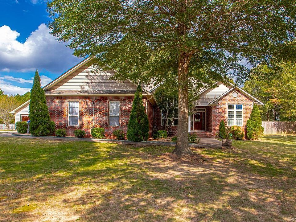 **15X30 SHOP**LARGE level fully fenced backyard with a storage building. The water fountain in backyard conveys with the property. BIG Covered porch for grilling or just relaxing. You will not want to miss this immaculate home on almost an acre of land. This home features 3 large bedrooms and 2 full baths. Split bedroom plan with a separate dining area. The kitchen has granite countertops and a 2 chair breakfast bar with a breakfast table area.The living room has a wood burning fireplace with an electric insert in it for no clean up. Nice laundry area. The primary suite is very large and primary bath has a jacuzzi tub with separate shower. Large primary walk in closet. Lots of windows across the back of the home. Side loading garage. You will not want to miss out on this one.