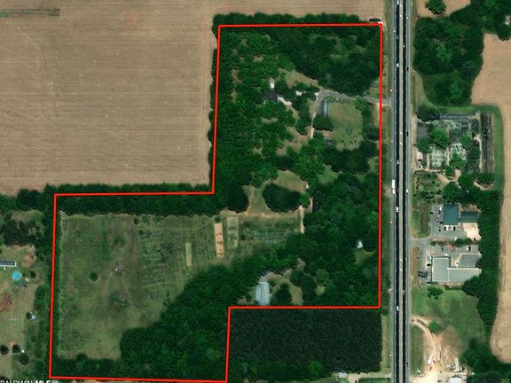 Commercial or Residential with approx. 1080’ of Highway 59 frontage! Take advantage of the tremendous commercial potential in the heart of rapidly growing Baldwin county. Nestled on a main thoroughfare with excellent exposure, this property is capable of outfitting a wide variety of businesses. Centrally and conveniently located, only 16 miles from Gulf Shores, 1 mile from downtown Robertsdale, and an easy commute to Mobile and Pensacola. Both parcels are zoned for commercial use (B-2), but currently grandfathered in for quiet residential living, making it the perfect adaptable investment. On this sprawling +/- 24.4 acre tract of land adorned with mature trees, you will find two separate parcels, each with an existing residential home. The residential houses could easily be converted for business use such as an office, clubhouse, bed and breakfast, wedding venue, or corporate retreat. Situated on the 9.4 acre parcel is a 1,776 SF 3 bedroom, 2 bath home, a 20x20 detached metal carport, and a 20x26 outbuilding. On the larger 15 acre parcel, you will find a custom built house with an attached 2 car garage. The interior has a grand 2,884 SF floor plan featuring 9 foot ceilings, crown moulding, a well-sized living room, an electric fire place, two spacious bedrooms, 2.5 bathrooms, a fully-equipped kitchen, traditional dining area, a breakfast nook, and two bonus rooms. Additional property features include: 30x50 pole barn, and an 1,800 SF workshop.