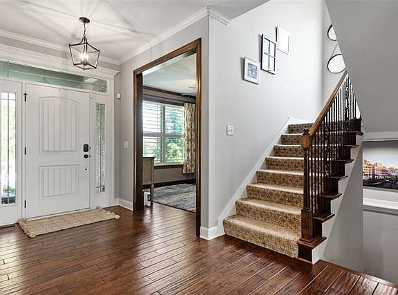 Enjoy the luxury of privacy and serenity in this gorgeous 2-story that backs to nothing but trees. This home is PACKED with extras! *Beautifully finished walk-out basement complete with wet bar, and guest quarters/5th bedroom. *Incredible kitchen that boasts a massive island, stainless steel appliances, and a HUGE walk-in pantry. *Relax in the amazing spa-like primary bath with double showerhead, jetted tub, and impressive walk-in closet. *Two spectacular outdoor entertaining spaces; enjoy peaceful nights on the covered deck overlooking the quiet trees, or cozy up on the stunning stamped patio next to the gas firepit. You’ll feel secluded while being minutes away everything you need – highways, shopping, restaurants, schools, and golf courses. Sitting on a quiet street in THE cutest subdivision is the home you've been waiting for!