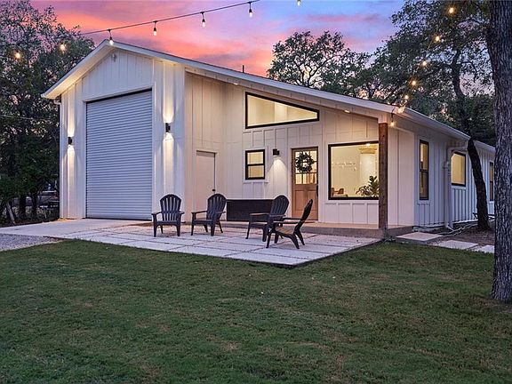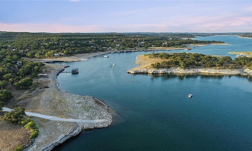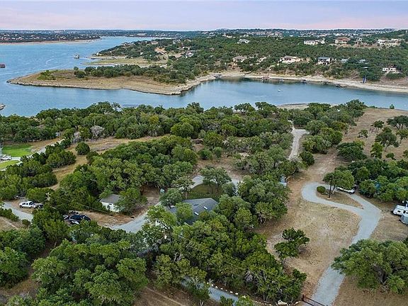 9.41 acres on Lake Travis with over 450ft of frontage and open water views along the deep body of Travis. Beautiful live oaks through out the property and flat acreage with a gentle slope into the lake. Limited Restrictions. 2/1 modern farmhouse with large porch acting as guest house, drive through boat garage w/ half bath. Deattached 2nd living space. Property has 2 RV pad sites with covered pavilion/deck and additional electric amp service. Build your dream home and/or use for STR potential.