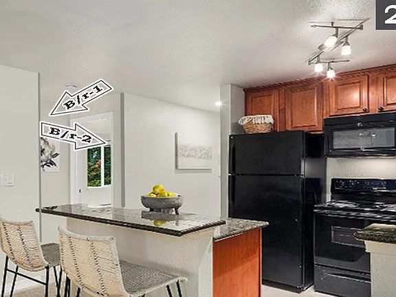 Unit NO: A-201 - bright updated condo, in the park at North creek in desirable location, secured entrance building, kitchen has a slab granite island with plenty of counter space appliances,. Living room with cozy wood burning fireplace, and private balcony with closet, over looking greenery spacious master bedroom with full bathroom and ample closet space. Large bedroom and additional full bath provide comfort. Community amenities include athletic court (Gym) , Dedicated Two cars parking spots. Minute from shopping, freeways, restaurants and groceries and pre inspected Water - Free all other utilities - tenants has to settle directly 2 cars parking - free Gym - free