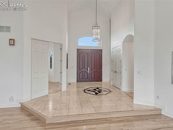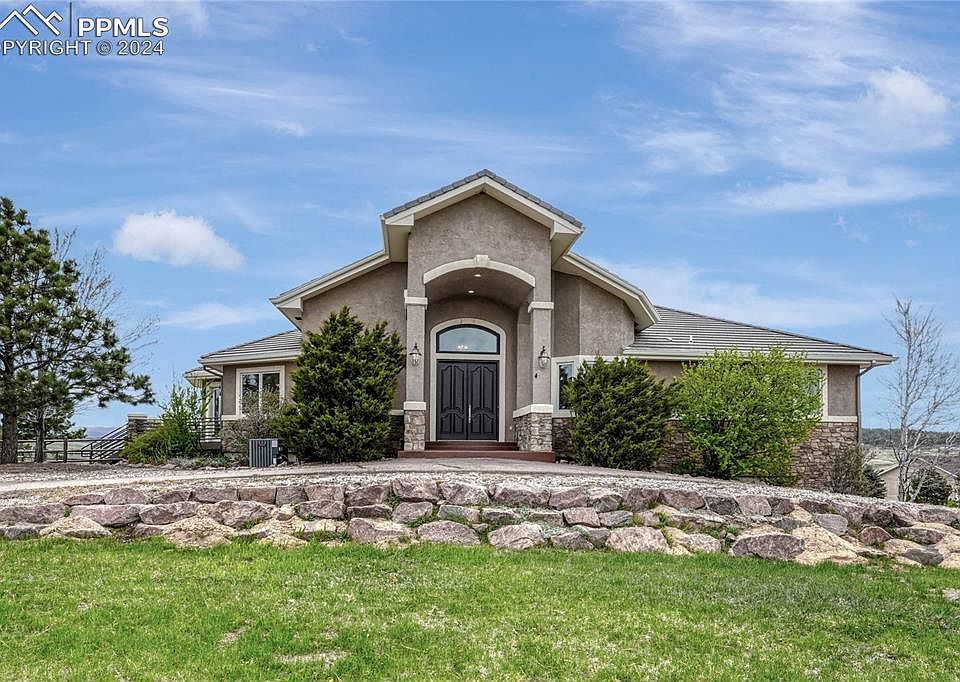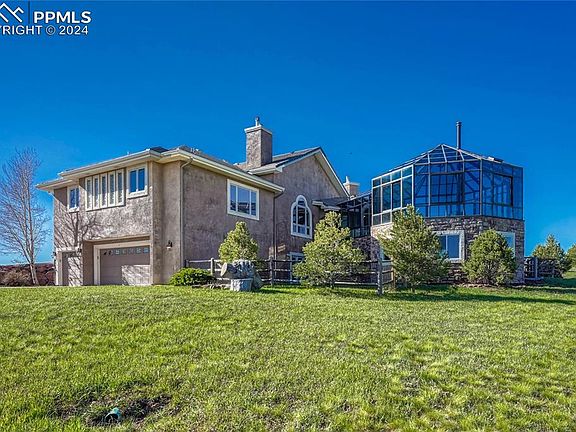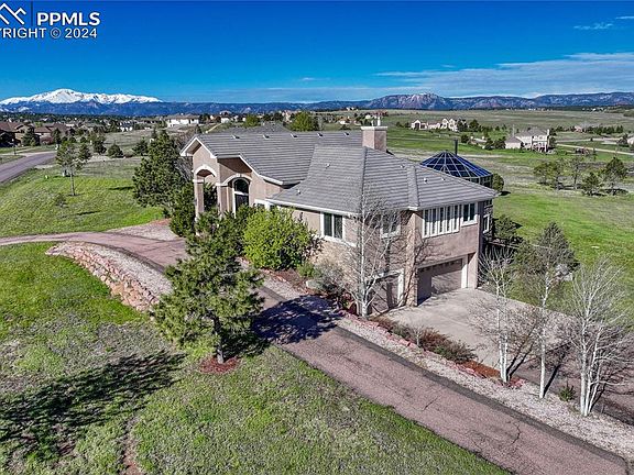 Gorgeous Pike's Peak Views and 360 degree views! Beautiful custom home features many amazing features to include an atrium, heated and cooled, to enjoy the views or star gaze every day of the year. Walk in the front door from the heated front porch and be treated by gorgeous tile, hardwood floors and vaulted ceilings. Walk into the Great Room with vaulted ceiling, hardwood floors, and gas fireplace. The kitchen features under cabinet lighting, painted cabinets, double oven, large pantry, great views, and much more. Bonus area off the kitchen has another fireplace and great views of Pike's Peak. Walk into the Master bedroom with wood floors, heated tile in the bathroom, large walk in closet, and 5 piece bath. The main level also has a Junior Master for guests with bathroom with heated floors. Formal Dining Room and Office also on the main level, complete with half bath & laundry room. Head to the basement for 2 more large bedrooms and 2 more baths. All new carpet in the basement! Good size Family Room complete with wet bar, built ins & walk out access. Walk out to a grassy area and head into the 500+ ft workshop piped for gas, coax, 220 access, and complete with panel. 3 car oversized garage is heated with built ins. The concrete outside the garage is heated as well to help on those winter days. Home has brand new A/C, 2 water heaters, large composite wrap around deck, and much more!