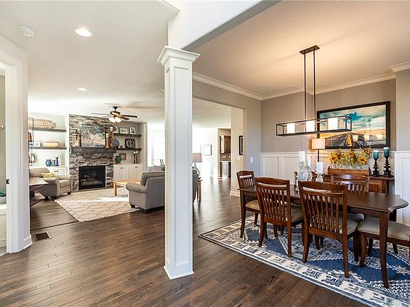 Wonderful spacious (& newer!) 2-story in Bristol Valley, a quiet community in the rolling hills of Lenexa. This lovely home has so much to love! Finished basement has 5th full bath. Main level includes formal dining and flex room/5th bedroom, with many possibilities. 90+% furnace, 8ft doors on lower level, 2-in faux wood blinds, beautiful kitchen with large walk in pantry, stainless appliances, gas stove, and rich stained wood cabinets. Gorgeous wood floors throughout much of main level. Luxurious master bath has free standing tub! Secondary bedrooms are generous sizes! Home has been wired for electric car charger! Enjoy the lushly landscaped back yard on the covered patio. Neighborhood has community pool and walking trails. All of this plus award winning DeSoto Schools! You will love this home!