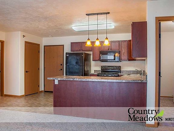 Come visit the beautiful Country Meadows apartments in NW Minot! Each apartment home comes with Kitchen Bar Seating, Separate Dining Room Space, Private Balcony or Patio, Granite Countertops, Built In Microwave, Private Laundry Room with Washer & Dryer, Abundant Storage space, Walk-in Closets in both bedrooms, 24 Hour Emergency Maintenance, Video Surveillance, and more. Call today to schedule you private tour! Landlord pays for water, sewer, & trash. Tenant pays for electricity/heat.