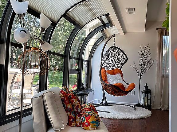 Master bedroom has a walk in closet. Attached 1 car garage. Gutter heaters for preventing ice falling on the patio windows.
