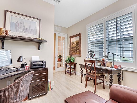 Highly desirable Callista model. 2,467 square feet with 3 bedrooms (master on the 1st floor), 3 full bathrooms and 1 half bath. Living room boasts 21 foot ceilings with a loft overlooking the living room for additional family living. Kitchen has upgraded stacked cabinets. Separate office with french doors. Impact glass and upgraded alarm system protect this home. Beautiful, gated community in the best location in PBG. All room sizes are approximate.