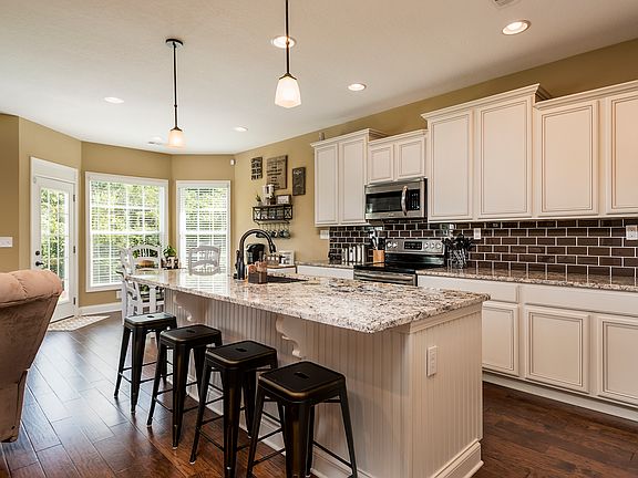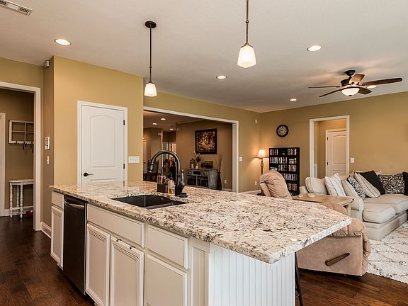 Beautiful, like new ranch with many upgrades. Sellers have added Hardwood floors throughout main living areas, 2'' faux wood blinds, wired for home theater, added garage wall organization, subway tile backsplash & wired for complete home networking, wired for cable satellite tv, rope lighting in master trey and ceiling fans. Granite tops in kitchen & butlers pantry,walk in tile shower. Open floor plan on one level. Premium lot that backs to woods. Don't miss out on this great house!