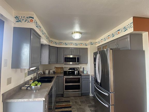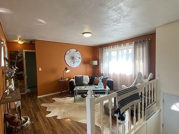 Tri-Level featuring three bedrooms on the upper level including a huge master suite with dbl closets and bathroom. Breakfast nook and formal dining. Pleasing kitchen with stainless appliances. One bedroom and .75 bath down and spacious family room with ability for gas fireplace hookup. New large deck off the back of the home and storage shed. Double garage with extra fridge and work benches. Huge fenced yard w/ sprinkler.