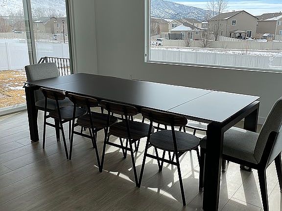 Beautiful spacious rambler home located in the Sunset Flats Community in Eagle Mountain, Utah. A favored Modern Farmhouse Plan built by D-R Horton. Close proximity to elementary, middle and Cedar Valley High School. Located close to multiple recreational opportunities that include nearby hiking trails, the Ranches Golf Club, Eagle Mountain State Park and regional park with baseball fields, soccer fields and splash pad. 1.0 mile to huge Cory B Wride family Park and less than 1 mile from Pony Express Parkway. Main floor has 3 bedrooms, 2.5 bathrooms. Gorgeous laminate flooring in kitchen, family room, and hallways. Spacious open-concept kitchen living and dining areas Wide hallway and stairs Quartz counter tops in kitchen and bathrooms. Tile bathrooms. Master bath includes large spa tub and separate walk in shower. Carpeted bedrooms. Cute backpack nook. Washer/Dryer hook ups. Fridge included Walkout basement. Covered patio in back and covered porch on front. 3 car garage. Energy efficient materials and smart home equipped with home technology package Main floor square footage: 2067. Unfinished basement: 2184.