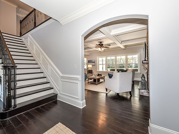 JUST SAY WOW! Custom built, this beautiful transitional craftsman style home unfolds into a two - story foyer with gorgeous hardwood floors. Relish in the natural sunlight that boasts through the many windows on the backside of the home.. This 4 bedroom 3.5 bath offers the Owner's suite on the main level. Luxury level upgrades abound this elegant home. Gourmet kitchen with detailed birchwood cabinetry, granite countertops, and stainless steel appliances. STUNNING! .Great room features a classic stacked stone gas log fireplace with raised hearth, coffered ceiling. Custom closets and pristine trim work through-out. Entertain in style on the spacious covered porch with custom birch beaded ceiling and skylights all overlooking the private level backyard. Don't miss out on this opportunity!