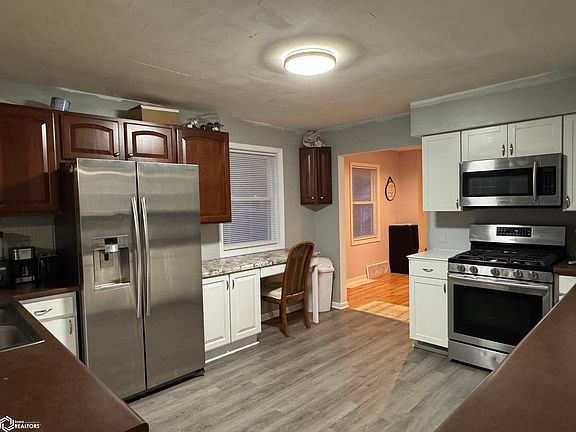 This fully remodeled home offers updated features both inside and out, including a new kitchen with an eating bar that flows into the spacious living room, which opens to the dining area. The main level also includes two bedrooms, an updated full bathroom, and a laundry room. The finished lower level features a cozy family room with a fireplace, a bar, and an additional full bathroom. Outside, the large backyard complements the oversized two-car garage with alley access. The home also boasts updated windows and a high-efficiency furnace for added comfort and energy savings. There is some exterior and interior work to be finished.