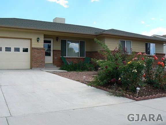 This clean well kept ranch style home offers open living space with a low maintenance exterior. Enjoy the stunning, south facing views of the San Juan mountains from the 12 x 40 rear patio, while keeping cool under the remote controlled, retractable awning. This home offers 3 nice sized bedrooms, 2 full baths, a living room and family room (this room could easily be a formal dining room) and a 2 car garage. The kitchen features plenty of counter space with a pantry. If you are looking for a lock and leave type of property this is it! It is conveniently located close to the Montrose Pavilion, centered between two golf courses and across the street from a park with walking trails.