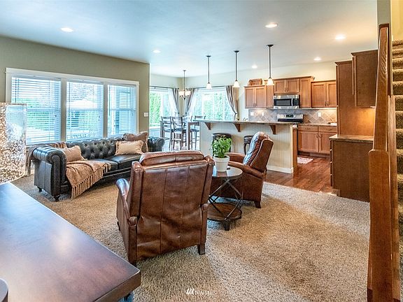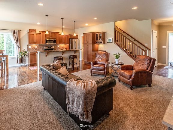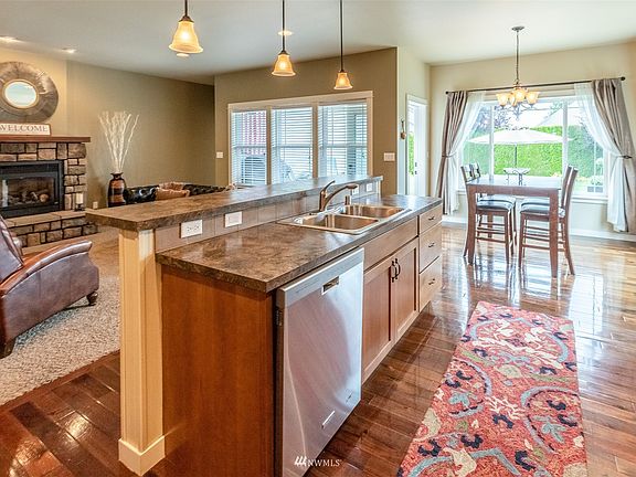 Immaculately kept one level home with bonus room! Open design, hardwood floors, living room w/stone gas fireplace, kitchen & center island w/raised eating bar, shaker style cabinets complimented by tile backsplash w/SS appliances, dining w/large corner windows for ample natural light, mud room as you enter from garage w/cabinets, sink, walk in pantry storage closet & shelving. Primary en-suite is separate from the other 2 bedrooms, has attached bath w/soaking tub & separate shower, double sinks, & walk in closet! Yard is private w/deck & extended patio. Garage is finished, sliding barn door to mechanical/storage space, built in cabinets & shelving. Newer furnace w/air cleaner, wifi thermostat, newer A/C unit. This is a great home & yard.