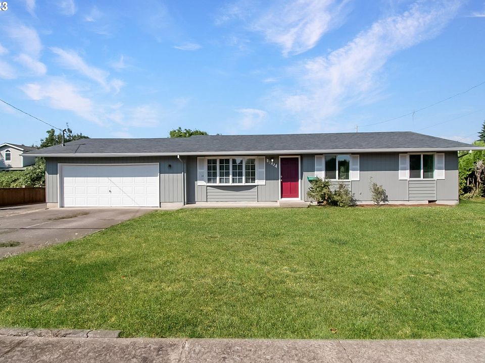 This 3-bedroom, 1.5 bathroom family home has 1205 square feet worth of space to work with! This adorable house is waiting for you! It already comes with a fence in the backyard for your precious pets, so you don't have to be worried about them escaping! The total lot size is 7,405 sq ft for them to run around in! This beautiful home has plank flooring throughout with carpeted bedrooms for that cozy feel and an attached 2 car garage and a storage shed in the back yard. Concerned about having to rent out kitchen appliances? You don`t have to! This kitchen comes with a large fridge, stove, and a dishwasher. The garage has laundry hookups. The white cabinets make for a clean and sparkling finish. There is also plenty of room in the dining room for the whole family with added counter space for bar stool addition. The main bathroom is finished with a beautiful light gray textured tub surround with added shower storage in each corner. There is also added storage next to the shower for extra toiletries.