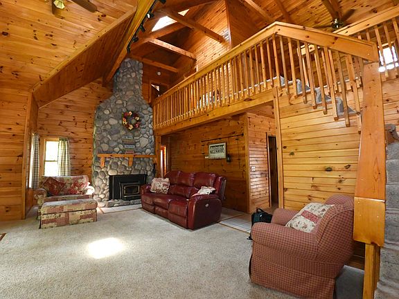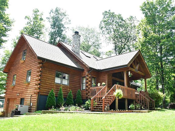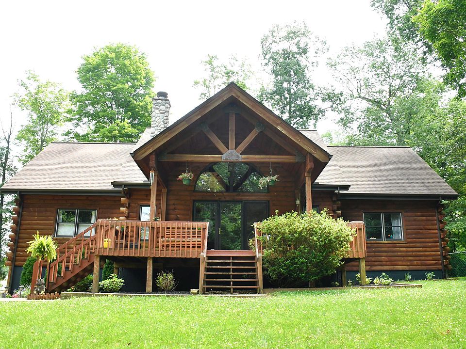 Beautiful log home on almost 2.5 acres in Hide A-Way Hills. 3 bed/2.5 bath w/1st floor master suite. Great room has stunning stone fireplace w/inserted wood burning stove & gorgeous beamed ceiling. Huge kitchen offers loads of storage/pantry space, stainless steel appliances, dining area & additional casual dining space. Upstairs offers 2 large bedrooms, full bath & loft for potential 4th bed/office. Property also has fenced yard, large basement & 2 car tandem garage. Furnishings are negotiable. Hide A-Way Hills is a gated community w/24 hour security. Community has multiple lakes for boating, fishing & kayaking. Community also golf, pool, tennis & plenty of other amenities for all ages!!