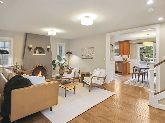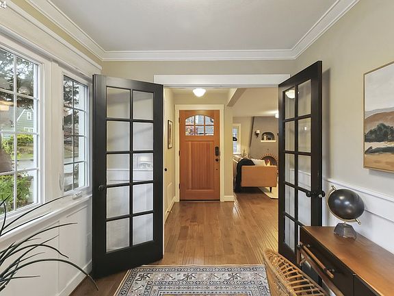 This one will steal your heart! Tucked away in the quiet, leafy NE neighborhood of Rose City Park, this English Tudor on a corner lot has beautiful structure and a smart floor plan that maximizes its generous square footage. When you step inside, you'll discover a light-drenched bonus room that's an ideal home office or study. Turn around and you'll discover the charm of its quintessential Tudor wood burning fireplace. Modern stainless steel appliances, gorgeous custom doug fir cabinets, and slab granite countertops create a gourmet kitchen. Plus, the versatile dining area lets you share a meal indoors or out on the lovely backyard deck. The layout of this home is outstanding, with bedrooms and a full bathroom on each of the three levels. On the main, a private bedroom with a full bathroom nearby. Upstairs, the large primary bedroom is a dream, with a walk-in closet and an impressive ensuite bathroom with marble slab counters. A charming bonus room with a closet rounds out the upper level for endless uses. In the basement, an expansive family room provides spacious opportunities, along with another wonderful bedroom, full bath, and laundry room. Renovated with a down-to-the-studs remodel in 2011, many updates have transformed this vintage home into a contemporary beauty, including modern plumbing, electrical, and a Terra Firma basement waterproofing system. Off the backyard deck, you'll find a whimsical paved patio area with a gas fire pit, lots of green space for planting and play, all fenced for privacy. Located in a fantastic neighborhood with an abundance of local perks - Trader Joe's, Whole Foods, Hollywood Farmers Market, Baerlic Brewing, cafes, food trucks, Hollywood Fitness, and the beloved Hollywood Theater. Many parks and schools nearby, plus great transit with buses and the MAX, and a Bikescore of 99! [Home Energy Score = 6. HES Report at https://rpt.greenbuildingregistry.com/hes/OR10234034]
