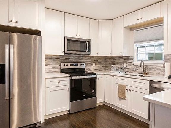 Fenced in backyardModern open floor planOriginal hardwood floorsStainless steel appliancesNew california closetsQuartz countertopsVaulted ceilings