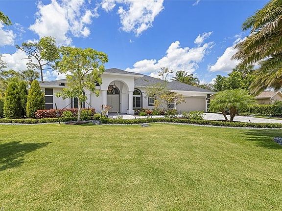 Welcome Home! Truly a home to walk into and unpack your belongings! This newly remodeled 3 bedroom 2 bath 2 car garage home has upgrades too many to include and will be supplied. The kitchen complete with upgraded cabinets and countertops and Wolf, Sub-Zero appliances is a chef's dream. Plantation shutters throughout. The primary bedroom and bath a relaxing oasis! The french doors leading to the enclosed patio that leads to a private and serene back yard! The magnificent landscaping throughout the property was masterfully done and the chandeliers in the entrance, dining area and primary bedroom will leave you speechless! These all speak volume of the taste and love that was put into this amazing home and your invited guests will envy your choice of making this home yours! With the Naples Address, plus our Beautiful Beaches, Restaurants, Shopping, SW Florida International Airport in close proximities, you are home in this sought after Golf Community!