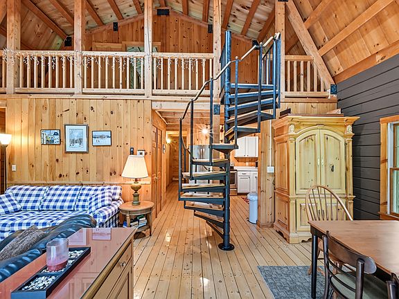 Looking for the ultimate getaway in Western Maine? This stunning Redington East property is it! Nestled in a peaceful setting, this multi-level home offers ample space with five spacious bedrooms and two bathrooms—perfect for hosting family and friends. Step inside to soaring cathedral ceilings in both the loft and living room, giving the space an airy, open feel. The living room's high ceilings even feature a ski chair, adding a unique mountain vibe. An open-concept design connects the living room to a bright, expansive dining area, ideal for gathering with loved ones. One of the home's most captivating features is the large deck with stunning views of Sugarloaf Mountain. In winter, you can watch the snow groomers prepping the slopes—an unforgettable sight! This turnkey home has all the essentials already taken care of: an on-demand hot water heater, a new propane fireplace insert for those cozy nights, updated HWBB heating, and a water filtration system. Outside, enjoy a large, flat lawn that abuts cross-country ski trails. These trails are perfect for skiing in the winter and transform into fantastic hiking or walking paths in warmer months, making this home ideal for nature lovers. Plus, an oversized three-bay detached garage offers plenty of space for vehicles, recreational gear, and outdoor toys, whether you're into snowmobiling, skiing, or mountain biking. With modern updates, a prime location, and ample space for guests, this Redington East home blends comfort, adventure, and mountain living. It's the perfect retreat for your Western Maine escape!
