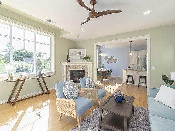 Light, bright & charming, this spacious 2006 home sits on a sunny corner in the heart of Sellwood. With generous rooms, AC, high ceilings & hardwoods this one has everything you've been looking for. Rare reverse floorplan puts the living & entertaining spaces in the treetops with amazing light & views. Vaulted primary suite has a private balcony to enjoy your morning coffee. 2 main floor bedrooms & full bath for work from home, guests, roommates. Awesome newer home with no HOA in a great spot! [Home Energy Score = 7. HES Report at https://rpt.greenbuildingregistry.com/hes/OR10205062]