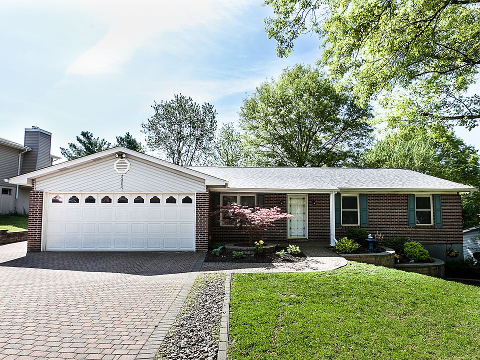 Fantastic updated ranch home w/ great open floor plan & finished walkout lower level! Pride of ownership shines throughout this brick ranch on quiet cul-de-sac w/ 2 year young roof/gutters, fenced yard & new low maintenance "Trex" deck & stone patio for summer fun & barbecues! Awesome curb appeal w/ extended 3 car paver driveway, sidewalk & porch plus 3 tier stone landscaping! Double hung replacement thermal windows! Beautiful upgraded hardwood floors, vaulted ceilings, bay window, 6 panel doors & slider to deck! Light bright kitchen w/ big center island/breakfast bar, pantry w/ custom glass door, under cabinet lighting, detailed ceramic backsplash & stainless appl's! Lovely main floor master suite w/ adjoining full bath, crown molding & raised vanity! Ceiling fans in all 3 bedrooms & porcelain tile flooring in both updated baths! Open spindled staircase to amazing finished lower level w/ plenty of room for your game table & family room too, w/ bath & wet bar rough-in ready for you!