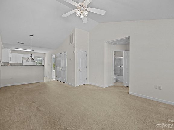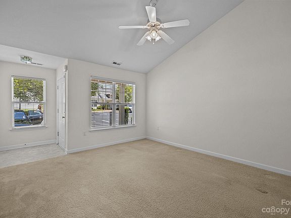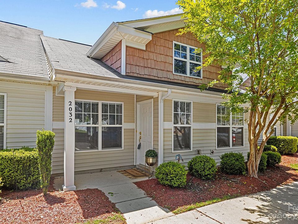 Adorable low maintenance home! Perfect for someone who wants a cozy space, maintenance free living and a great location! Quiet community located close to shopping, restaurants and minutes from Lake Wylie! 2 full BRs and 2 Full Baths, vaulted ceilings, walk in closets, white kitchen cabinets, neutral colors throughout, 2 inch wood blinds throughout, washer, dryer and refrigerator included plus 2 assigned car spaces, great Clover Schools and community amenities. Don't miss this great home in the perfect location and at a great price!