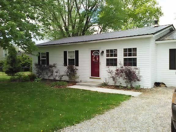 Cute, Cute, Cute Country Living! *Centrally located with short drives to Richmond, Berea, Irvine *Cozy ranch style floor plan, over 1200 square feet *White vinyl siding exterior *New black metal roof *Black shutters & red front door for curb appeal accent *Large shade tree & nice landscaping in front *New concrete sidewalks *New concrete for patio area *Chain link enclosed front & back yard *No Carpet!! *Living room, hallway, all 3 bedrooms feature dark walnut refinished hardwood *Kitchen, family room & laundry with light wood laminate floors *Bathroom vinyl flooring, pedestal sink, wood plank ceiling *Living room good size 15 x 13 highlighted by corner wood burning stove, ceramic wall & hearth, great heat savings *Spacious kitchen & dining area, light oak cabinets, modern countertops *Black Whirlpool kitchen appliances include smooth top range & side by side refrigerator *Family room addition measures 13 x 9, ceiling fan & window blinds *Wood deck *Storage building *Motivated Sellers!