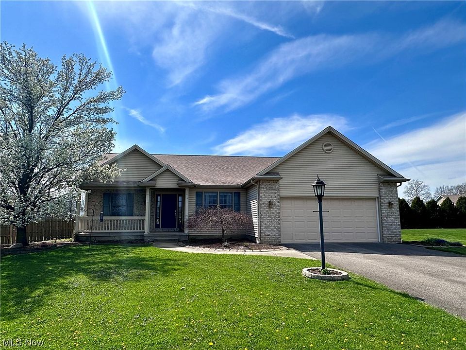 Welcome to this terrific three bedroom, two bath ranch-style home sitting on almost a half acre lot in a quiet cul-de-sac. This home features a vaulted great room with fireplace, eat-in kitchen with breakfast bar and all appliances, first floor laundry, den/office, and a spacious primary bedroom with en suite bath and walk-in closet. Additionally, there is a large basement with plenty of storage space, huge fenced-in backyard offering total privacy, oversized heated garage, and newer roof. Mineral Ridge schools. Call for more details.