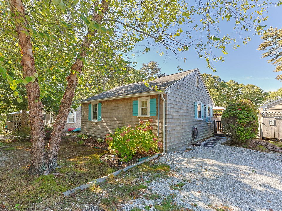 Sweet Starfish Vacation Village, 2 bedroom, free standing condo with an in-ground private, association pool and a short drive to Indian Neck Beach! Renovated in 2019 with 28' gated, sunny deck. New paint, out-door shower & hot water heater (25). Hard wood floors throughout with a cathedral open living area, ready to move in! Easy Cape Cod living with Birch shaded moss front yard and Hydrangeas. Annual association fee $1935.00 in 4 payments of $484