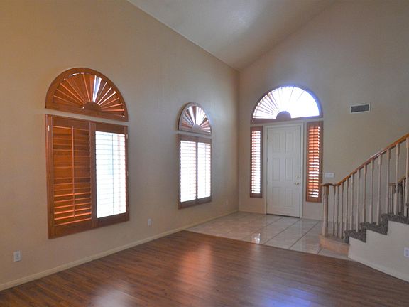 Huge beautiful pool home in master planned community of Peccole Ranch, Summerlin. Wood shutters in the entire house, laminated wood flooring on 1st floor, modern kitchen; Branch New carpets thru out the 2nd with a Gorgeous chandelier in vaulted ceiling dining room for fine dinning. Enjoy a relaxing day under the covered patio overlooking the sparkling pool and spa. One bedroom with in suite bathroom downstairs and a 3-car garage for ample parking. Move-in Ready ! Minimum 1 year lease; rental price does not include weekly pool service $50/week and monthly gardening fee $75, sewer $30 and trash $28 .
