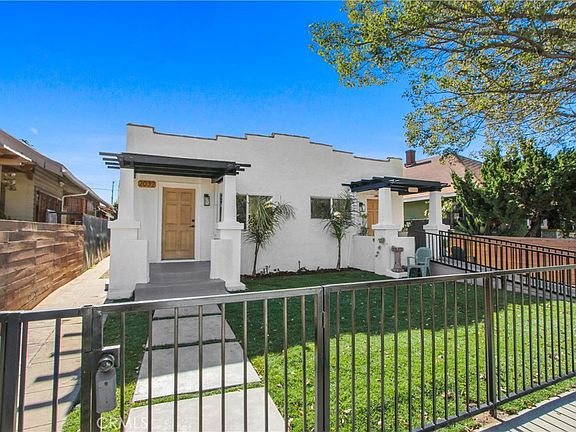 Sharp and newly remodeled 3bd/2ba Spanish charmer WITH ATTACHED, EXTRA 1bd/1ba unit providing $1,853/month in rental income. Terrific curb appeal, gated entrance. MAIN HOME OFFERS: spacious living/dining room combo, beautiful kitchen w/ center island, custom cabinetry and quartz counters. All three bedrooms offer ample living/closet space, and the master en-suite has a huge walk-in closet, french doors leading out to backyard. Both bathrooms beautifully remodeled with custom cabinetry, quartz counters, glass shower doors, custom tile and hardware. Inside laundry. Beautiful hard wood-like flooring thru out, custom hardware/lighting. NEW ROOF. NEW Central air in main unit/home SECOND UNIT: offers 1bd/1ba and has also been remodeled using the same materials/hardware thru out. , mini split air con/heating Backyard alley access w/carport and large entertainment areas which permits you to safely park your vehicles off the street and in the backyard. NO NEED TO PREVIEW! Located within the Jefferson PARK HPOZ
