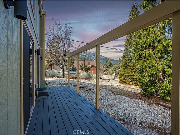 Welcome to this spectacular, modern twist to the concept of a mountain cabin, situated on a large corner lot. There are two, flat, easy-access driveways providing ample parking, with gates that run along the lower western and northern perimeters of the property. The front deck with outdoor lighting and well-treed, spacious yard makes for enjoying gorgeous, day views, evening stargazing and the overall mountain-life experience. Converted and renovated in 2022, the home was built to conform to 2019 CALGreen residential mandatory measures (effective January 1, 2021), along with the installation of solar panels supplying electricity back to Cal Edison for electrical credit. Sliding glass doors open to the main, lower level of the open-concept living area and kitchen with soaring ceilings. Throughout the home lighting systems, fixtures and appliances have a fresh, upgraded look and feel. The great room/kitchen area has an efficient Friedrich mini split (36000 BTU) providing both AC and heat. On this first level there is one bedroom with a pull-down Murphy bed and a 3/4 bath with two sinks. On the second level you will find an open loft, currently being used as a second bedroom, along with another 3/4 bath with two sinks. The flat roof could potentially become an amazing upper-level deck once access has been added and with proper permitting. Here are just some of the other upgrades and amenities included; Milgard windows and glass sliding doors, wall-mounted electric fireplace, Pex plumbing, indoor fire sprinklers, Water Boss water softener, Rinnai tankless water heater, GE stacking washer/dryer, RV-ready electrical panel and RV "dump" station connected to the septic tank. The home comes fully furnished, with all items that are currently in the home remaining. The buyer and buyer's agent are encouraged to complete their own investigations to verify all information provided herein by the listing broker. Come see if this could be your future mountain retreat!
