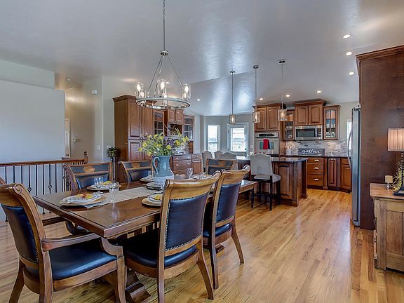 Beautiful move-in ready rancher situated on 0.47 acre lot with outstanding Front Range and Bald Mountain Views. The luxurious great room, dining room and chefs kitchen flow for that much desirable open concept and features hardwood flooring throughout. A custom made gas fireplace with wood mantle and a large wall window are featured in the great room. The kitchen boast a double wall oven, granite countertops with center island, beautiful Cherry cabinets with glass fronts and under mount lighting plus a walk-out to the deck and those Front Range views. Spacious master retreat with vaulted ceiling, a sitting area, a walk-out to the deck and includes two custom barn doors that lead to the private 5 piece luxury bath with jetted tub. Theres an additional main level bedroom with vaulted ceilings that would make a perfect office with a full size bath right down the hall. Wrought iron stairway leads you the bright and airy lower level family room and features crown molding, a built-in desk, a gas fireplace and a walk-out to the patio and yard. Completing the lower level are three additional bedrooms with large closets, a full size bath and a storage area. Extras including; central air, washer/dryer, 360-degree mountain views, an adorable play house, District 38-Schools, 3-car garage and so much more. Easy access to I-25 for commuting to Denver or Colorado Springs.