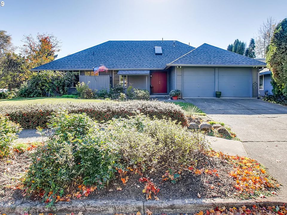 Tour this comfortable 1-level corner lot home in a quiet cul-de-sac in Shadow Woods. This friendly neighborhood offers a community pool! The open floor-plan home has a private, fenced back yard with fruit trees and garden. Lots of updated features: New remodeled bathrooms, bedroom floors, 50-yr warrantied roof, gutters & skylights; full kitchen remodeled 2014; and new windows 2013. One mile from MAX, close to shopping and restaurants!