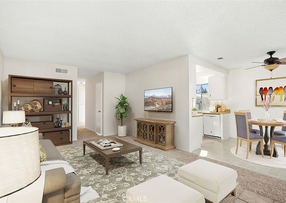 This wonderful 3 bedroom, 2 bathroom home is located in the highly desirable community of Fairmont Hill in Yorba Linda. This upper end unit and single level condo has 1,062 square feet of living space with a detached 2-car garage on the first level. You will appreciate the fresh neutral paint throughout the home and the newly installed carpet in the living room, hallway and bedrooms. As you walk in, you are invited into the spacious living room that opens up to the light and bright dining area and kitchen. The kitchen features recessed lighting, white cabinetry and wood-like Formica countertops. Right off the dining area is a large slider that leads you to your outdoor patio terrace overlooking the neighborhood. Down the hallway, you will find two generously sized secondary bedrooms that share the hallway bathroom with a single vanity and tub in shower combination. The sizeable master bedroom features a walk-in closet and ensuite bathroom with a single vanity and shower in tub combination. Completing the home is the laundry room with extra storage cabinets. The beautifully maintained community features lush green belts, a large swimming pool and spa, playground area, a volleyball court and tennis court. Trash and cable TV is included with HOA. Conveniently located in the award-winning Placentia-Yorba Linda School District, and just minutes from shopping, dining and entertainment including Savi Ranch, Yorba Linda Town Center and Imperial Promenade. If you’re a first-time home buyer or a buyer looking for their next investment property – this is the perfect home for you!