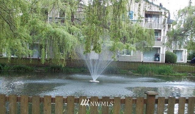 Handsome top floor, corner Unit, light, bright Condominium. Granite counters and island, beautiful kitchen cabinets, open concept living room with wood burning fireplace for cozy evenings and dining room opening to a private balcony for BBQ's and relaxing. Convenient location, close to shopping,dining and I-405 for easy commuting. This is a great community offering open areas, next to fountain and duck pond, for outdoor enjoyment.