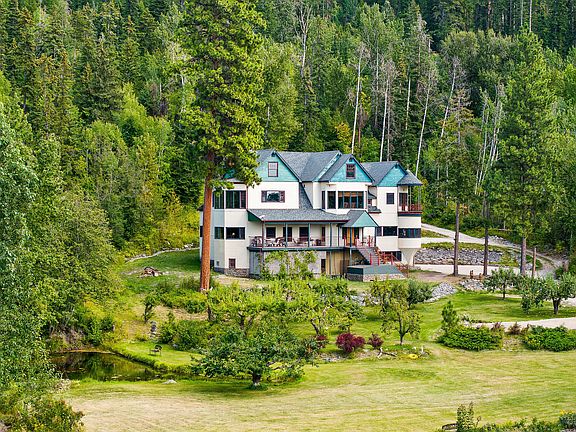 Perched on 20 acres overlooking Flathead Lake, this exceptional estate offers an unparalleled living experience, combining rustic charm with quiet serenity. The main residence, spanning over 7,300sf, features a stunning multi-level design that capitalizes on the property's dramatic setting, perfectly framing breathtaking lake and sunset views. Adding to its charm, the original homestead provides a secluded retreat for visitors or a caretaker, while a flourishing orchard with over 60 fruit trees enhances the dynamic appeal. A tranquil creek winds its way through the land, flowing into a pond stocked with trout—an idyllic spot for fly fishing or quiet reflection. The upper bench offers the perfect spot to build an additional home or guest retreat, enhancing the already impressive potential of this offering. Bordering US Forest Service land that provides limitless opportunities for adventure just beyond your doorstep. This is more than a home; it's a rare legacy awaiting its next steward. With its commanding size and versatile layout, the main residence consists of 8 bedrooms and 8 bathrooms with 3 of the bedrooms offering on suite baths. The home includes a tuck-under garage and more than 2,000 additional square feet of shop and storage space, complete with three-phase power—perfect for any hobby or project. The charming homestead, built in 1932 features 3 bedrooms and 2 baths within 1,900 square feet of living space, along with a detached garage and shed. Practical amenities abound, including full RV hookups and a chicken coop. The upper three quarters of the property is forested with timber and features a roughed in trail for access and exploration, leading to a dramatic rock cliff at its highest edge—adding a wild, beautiful element to the estate. Located only minutes away from the artisanal village of Bigfork and within an hour drive of Glacier National Park & Whitefish Mountain Resort.