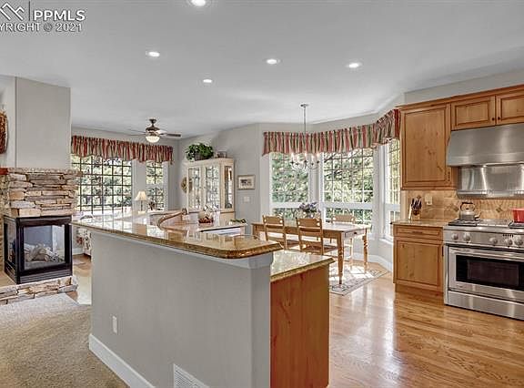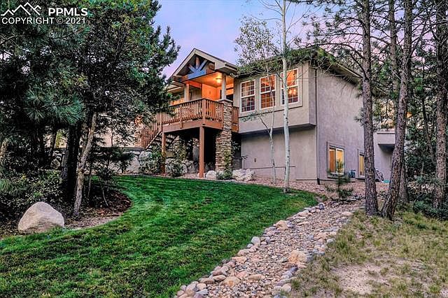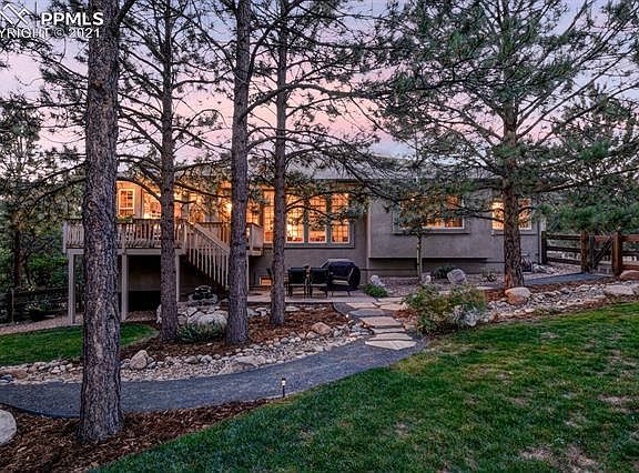Exquisite ranch style home in the area of Greenland Preserve in Monument on a beautifully landscaped private 0.52 acre lot. Thoughtfully laid out floor plan that features French doors that lead into the office (or 4th bedroom) and a formal dining room with a wall of windows and crown molding. The bright airy great room boasts a 3 sided stacked stone gas fireplace with a spacious hearth room that walks-out to the deck with access to the lower patio where you can enjoy the very private and quiet forest setting. The chefs kitchen features a bay window breakfast nook, granite countertops, a center island, custom Knotty Alder cabinetry, gleaming hardwood floors, GE Monogram appliances plus a Bosch dishwasher. The master retreat features a walk-in closet and the attached 5 piece master spa. Completing the main level is the laundry room and a full size bath. The lower level features a family room that is perfect for large gatherings, an incredible home theater that includes a custom commercial film screen, all necessary video audio equipment (see attached special feature), two rows of theater recliner seating with stacked seating, custom acoustic drapery treatments plus a separate wet bar area with built-in cabinetry and a granite countertop. Two additional bedrooms, a full size bath, a theater control room housing theater equipment and a large storage room completed the lower level. This amazing home is perfect with multiple outdoor living spaces and tons of privacy on a acre lot. Easy access to I-25, downtown Monument and Palmer Lake with an easy commute to both Denver and Colorado Springs.
