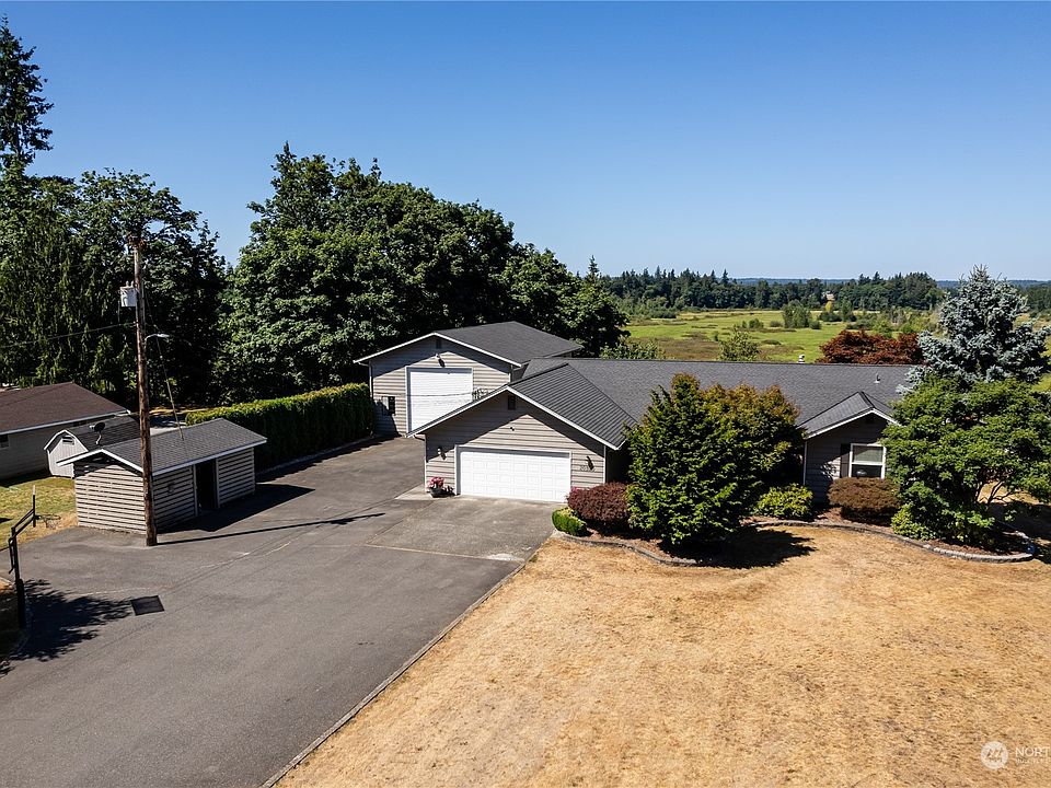 Fantastic view home in Arlington. Nestled on over an acre in a quiet cul-de-sac is a beautiful rambler with a full basement! Lots of RV parking (covered or uncovered). 1380 sqft shop with RV door, office, and upper level storage! Home has been recently renovated with new furnace/AC, H/W tank, plumbing, paint (interior), carpets downstairs, crawl space, well pump and lines, toilets and D/W. All appliances in home and surround sound included. Hardwoods, tile, Granite, Stainless. Huge back patio with awesome view to the West over Stilly Valley. 3BR/2.5BA appx 2,581 sqft.