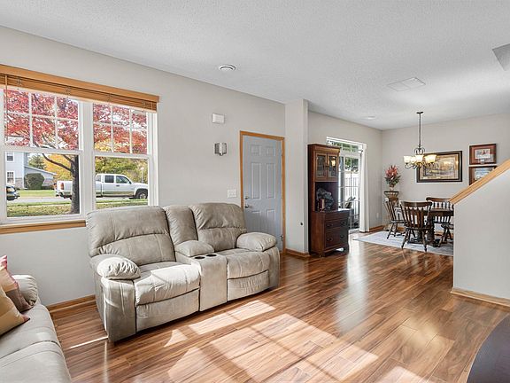 Welcome to 20326 Kensfield Trail in Lakeville, MN, a beautifully designed 4-bedroom, 3-bathroom end-unit townhome that effortlessly combines comfort, style, and functionality. With its spacious and thoughtfully crafted layout, this home is perfect for both everyday living and entertaining. The main level features an inviting open-concept floor plan that seamlessly connects the living room, dining area, and kitchen—ideal for family gatherings or hosting guests. The kitchen is equipped with stainless steel appliances, expansive countertops, and a breakfast bar that provides extra seating. Please note, the current appliances will be replaced with other stainless steel appliances. Whether you're preparing meals or enjoying casual dining, this kitchen offers the perfect setup for both. Just off the dining area, a sliding glass door leads to a private concrete patio, perfect for grilling, outdoor dining, or simply relaxing in the fresh air. The attached two-car garage, with direct access to the home, ensures easy convenience for bringing in groceries or completing other tasks. Upstairs, all four bedrooms are bright and generously sized. The luxurious primary suite is a private retreat, featuring an ensuite bathroom with his-and-hers sinks, a large soaking tub, a separate walk-in shower, and a spacious walk-in closet. The additional bedrooms offer ample space and flexibility, whether you need a family room or a home office. The upper level also includes a convenient laundry room, complete with storage for laundry essentials and a countertop for folding clothes, making laundry tasks easier. Located near Marion Lake, Kensington Park, Emagine Theater, Lakeville South High School, and a wide variety of dining and entertainment options, this townhome provides easy access to everything you need. Don’t miss the opportunity to make this beautiful townhome your new home!