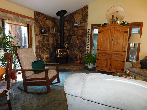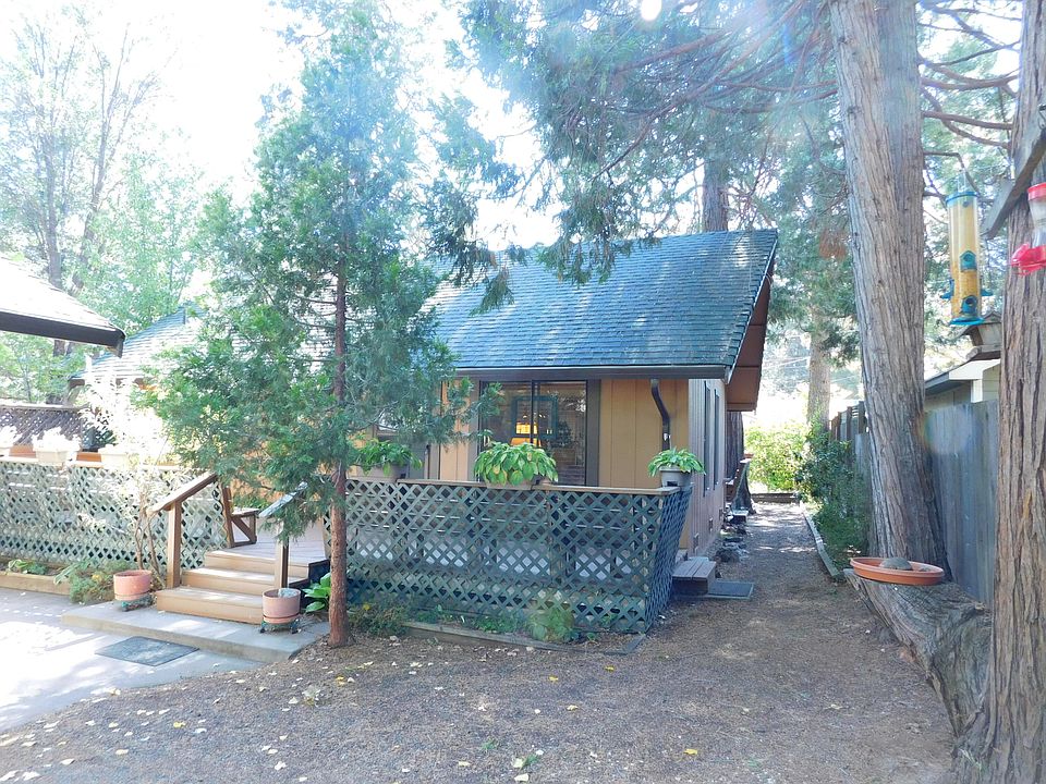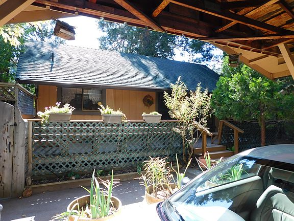 Privacy is key to this 1 bedroom 1 bath home. This home has an interesting history. The master bedroom was a cabin. In 1985 the cabin was taken down to the studs and the rest of the home was built. There is a studio fully insulated with a 2 car carport, RV barn/garage. Easy to care for yard with raised flower beds and front and back deck with built in seating. Privacy fence surrounds the home and studio.